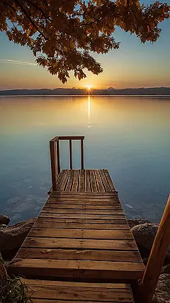 Imagine a peaceful lake surrounded by autumn foliage, its colors a breathtaking mix of red, yellow, and orange. The water reflects the scene like a perfect mirror, capturing the beauty of the trees and the calm of the water. Right at the edge of the lake, there’s a small wooden dock. You can almost hear the gentle creak of the boards as you step onto it. This is the perfect spot to escape the hustle and bustle of life and find some inner peace.