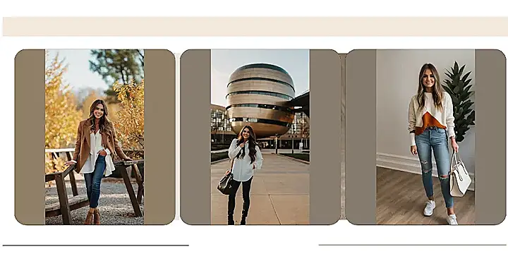 This outfit is the perfect blend of comfort and style. The warm brown sweater and jeans give off serious autumn vibes, and the boots add a touch of sophistication. Just imagine sipping a glass of red wine on a crisp fall day while wearing this outfit. It’s basically the definition of a “wine-derful” experience!