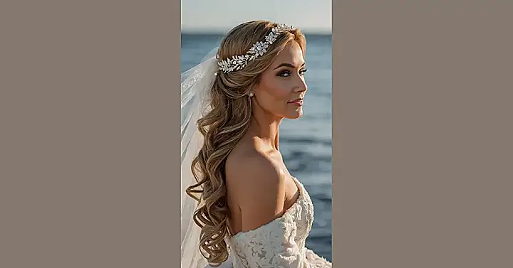If versatility is what you seek, the half up half down style is where it’s at. Imagine walking down the aisle with half of your luscious locks free while the other half is artfully pinned back, enhanced with enchanting accessories like a beautiful crown. This incredible style combines elegance and comfort, allowing you to sway through your vows with both confidence and pizzazz!