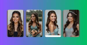 This bride looks like she’s ready to say “I do” in a magical winter wonderland! Her hair is styled with soft, romantic waves and a sparkly hairpiece that’s like a crown of snowflakes. It’s the perfect look for a winter wedding, and it’s guaranteed to turn heads.