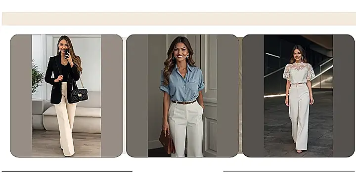 This outfit is like a secret handshake for grown-ups – you know, the kind where you accidentally wear something super stylish without even trying too hard. Imagine you’re a super cool secret agent on a mission to look amazing (the mission is always looking amazing, obviously). This outfit is your undercover disguise; a delicate lace top and wide-leg pants that say “I woke up like this…and spent a small fortune on looking this effortlessly cool.” No one will suspect you’re actually ruling the world in comfy-chic style!
