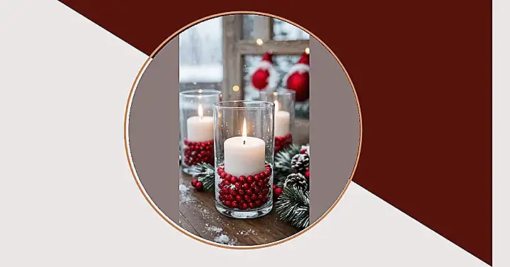 Forget those expensive store-bought decorations that make your wallet cry! This picture is basically a secret DIY mission showing off how a few simple items can transform your room into a cozy winter wonderland. We’re talking regular glass jars, a bunch of shiny red berries (which could totally be old ornaments or even just red beads!), and a plain white candle. Sprinkle a little fake snow – or maybe even glitter if you’re feeling extra sparkly – and boom! You’ve got a centerpiece that looks like it stepped right out of a fancy magazine, but you can tell everyone you made it yourself. High five for being crafty and saving your cash for hot chocolate!