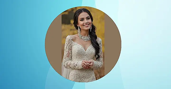 This bride looks like she’s ready to say “I do” in a magical winter wonderland! Her hair is styled with soft, romantic waves and a sparkly hairpiece that’s like a crown of snowflakes. It’s the perfect look for a winter wedding, and it’s guaranteed to turn heads.