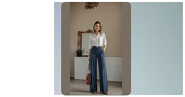 Forget those days of squeezing into skinny jeans that feel like a second skin (and not in a good way!). Our friend in the picture is absolutely owning those fabulous wide-leg trousers, looking like she’s floating on a cloud while still totally rocking a super chic vibe. These pants are basically your secret weapon: they look incredibly sharp, especially paired with a crisp white shirt like hers, but they feel like you’re wearing fancy pajamas. Who knew looking this good could be so unbelievably comfortable? No more feeling squished, just pure, breezy style!