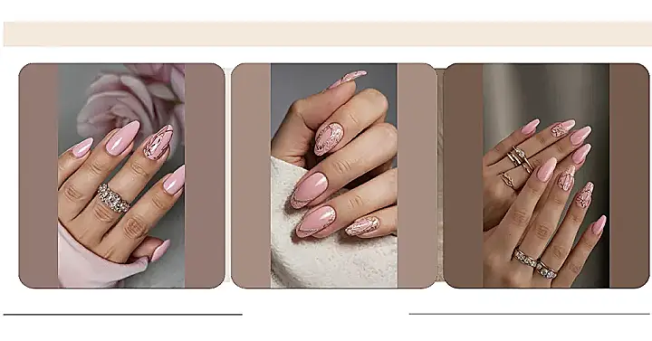 You know how some things just scream “summer fun” without even trying? Well, these nails are practically shouting it from the rooftops! With their super cute soft pink shade and those fancy gold bits that look like tiny, sparkling branches, they’re ready for any adventure. Whether you’re planning epic pool days or just chilling with your favorite snacks, these nails are basically accessorizing your hand for maximum sunshine vibes. It’s like your fingers decided to throw a fancy garden party, and everyone’s invited to stare at how fabulous they look.