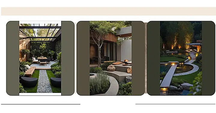 Look at how this garden pulls off the ‘I woke up like this’ look – all effortlessly stylish, even with concrete steps and a bunch of spiky plants! It’s like the architect told nature, “Hey, can you just, like, *chill* here and look awesome?” And nature totally delivered, mixing a cool, modern vibe with green goodness. Even in this compact setup, you’ve got everything you need for a perfectly Instagrammable moment, whether you’re pondering life’s mysteries next to the little pond or just trying to hide from your responsibilities behind a really fancy rock. It just shows you don’t need acres to create an epic outdoor hang-out.