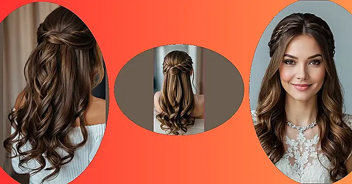 This hairstyle is like the wedding version of a “business in the front, party in the back” mullet, but, like, way classier. You’ve got those cute braids up top, giving off major princess vibes, and then BOOM, cascading curls that are ready to hit the dance floor. It’s basically the hairstyle that says, “I’m ready to say ‘I do’ and then tear it up at the reception!”