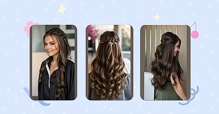 Finding the ultimate grad hairstyle can feel like trying to solve a quadratic equation while blindfolded – confusing and maybe a little scary! You’ve scrolled through a million pics, pinned enough looks to crash Pinterest, and your poor hairbrush is probably tired just thinking about the possibilities. Is it going to hold all night? Will it still look good after you bust out your killer dance moves? That half-up braided style in the picture looks totally ready for the challenge, ready to shine brighter than your future report card.
